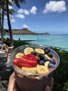 Island Vintage Coffeeのアサイーボウルをテイクアウトしてワイキキビーチで食べました。アサイーの少し酸味の効いた味と何とも言えない触感がたまりませんでした!